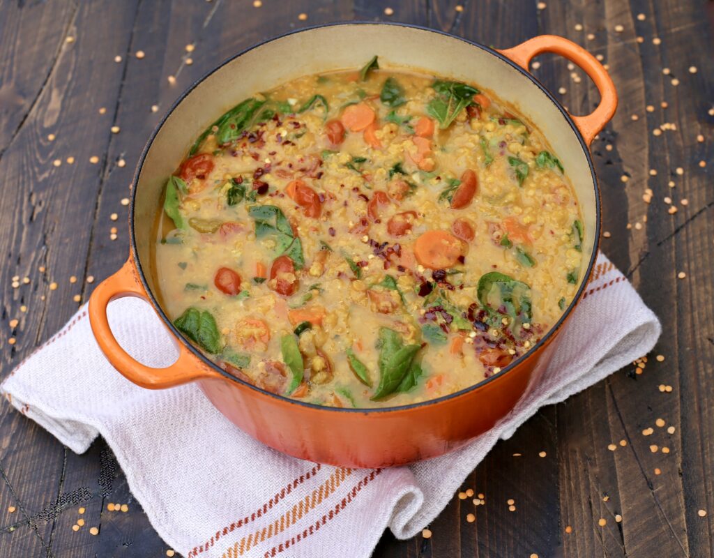 Fill up on a hearty dose of plant-based protein with this old family favorite! The vegetables & lentils come together for a warming and satisfying soup on its own, or serve it over brown rice for an extra-filling option. Take it to another level in taste & nutrition by adding in some leafy greens and additional spices to the mix!